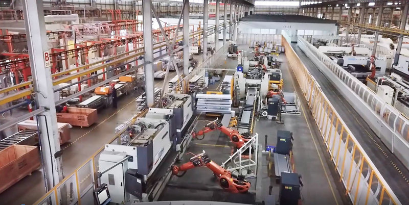 ▲电梯门板自动化生产线