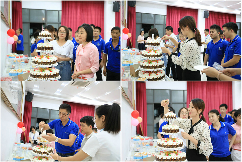 在一片欢声笑语的气氛中开启了员工生日会,4层美味蛋糕映入眼前,寿星们团团围着,点燃蛋糕蜡烛,欢唱生日歌,许下一个个美好而又期待满满的愿望,共同享受美食。