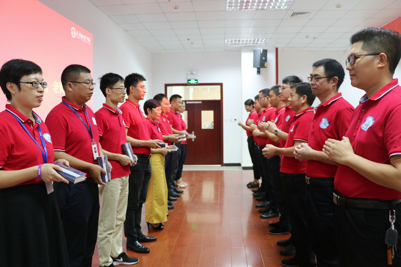 开班仪式上举行了庄严的拜师仪式,42位储备高管分别给老师们行拱手礼,感谢老师们的悉心栽培,从此发奋图强,为公司的事业再创辉煌,老师们赠书给学员作为回赠。