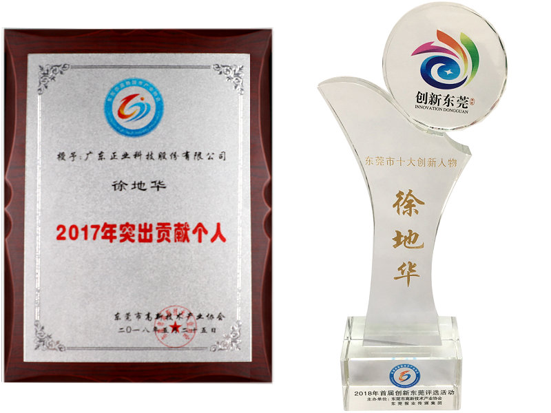 徐董事长曾荣获2018年度东莞市十大创新人物、2017年度东莞十大经济人物和2017年度突出贡献个人等荣誉奖项,这对徐董事长的研发创新和贡献成果给予了高度的肯定和评价。