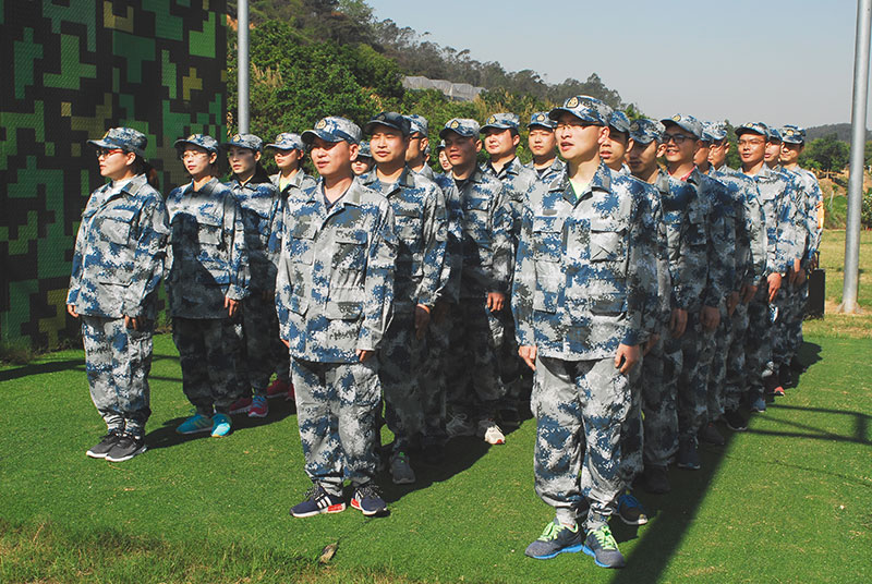 全员整装立正、精神饱满的迎接特训