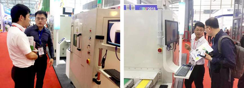 ▲销售精英为客户讲解和演示新能源X-ray无损检测设备